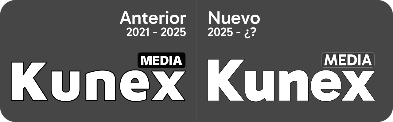 Comparación entre el logo de Kunex Media de 2021 y 2025.