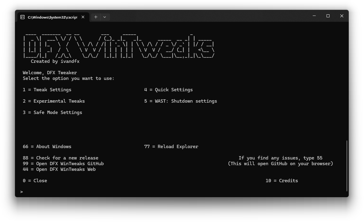 As of April 19, 2025, DFX WinTweaks is no longer supported.